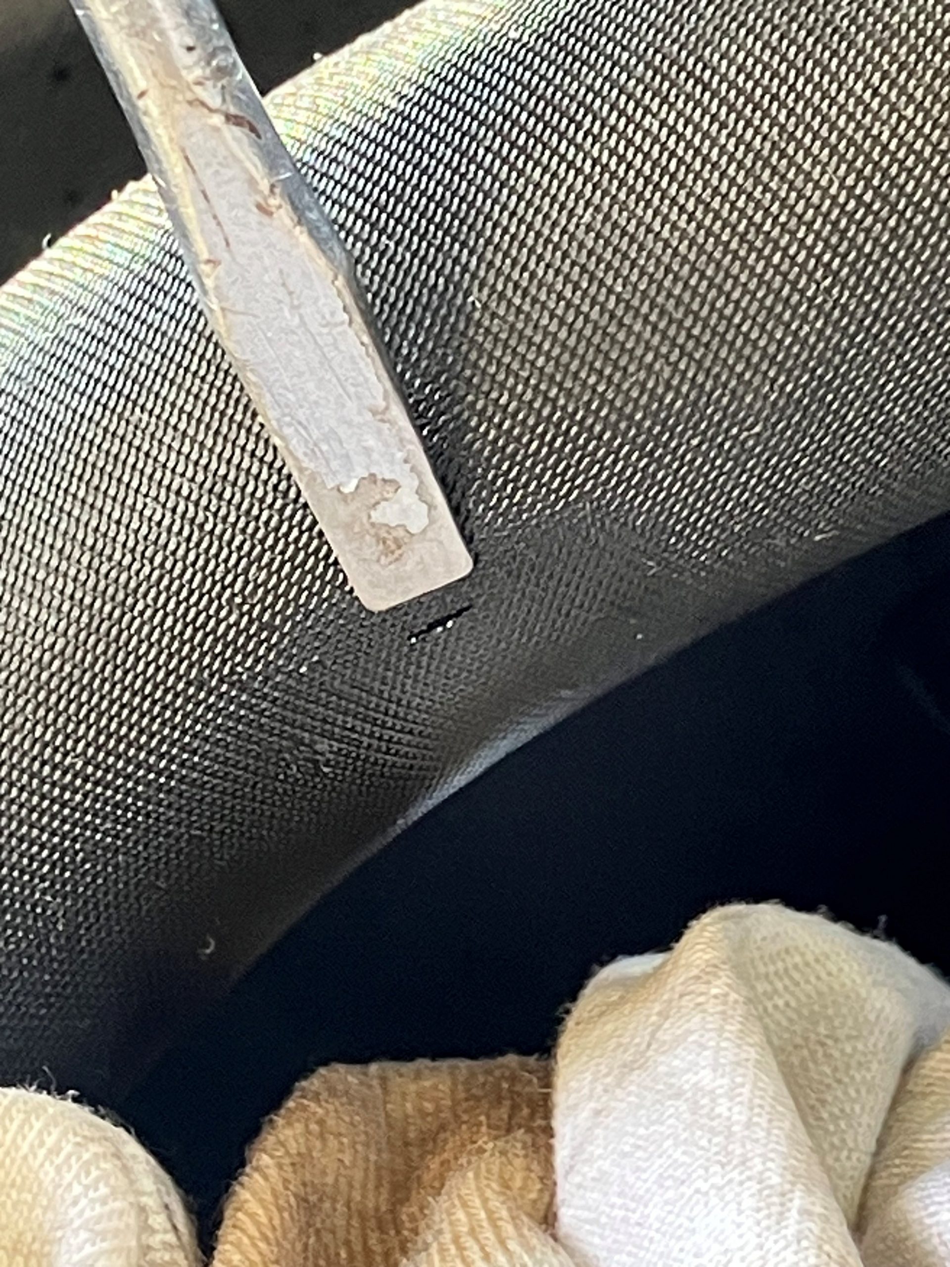お調べするとマイナスドライバーの先端ほどの亀裂発見!!